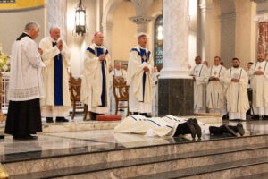 The two men then prostrated themselves before the altar for the Litany of the Saints as the choir sang the invocations and the faithful responded.