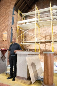 The OLPH pastor is directing a major renovation of the 87-year-old church building, updating the worship space from the narthex to the sanctuary.