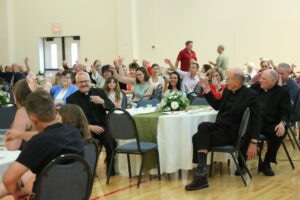 Deacon Humberto Collazo of St. Dominic presented a gift to Father Cummins, and Mr. Venzon saluted the priest at the end of the dinner, leading to a long round of applause.