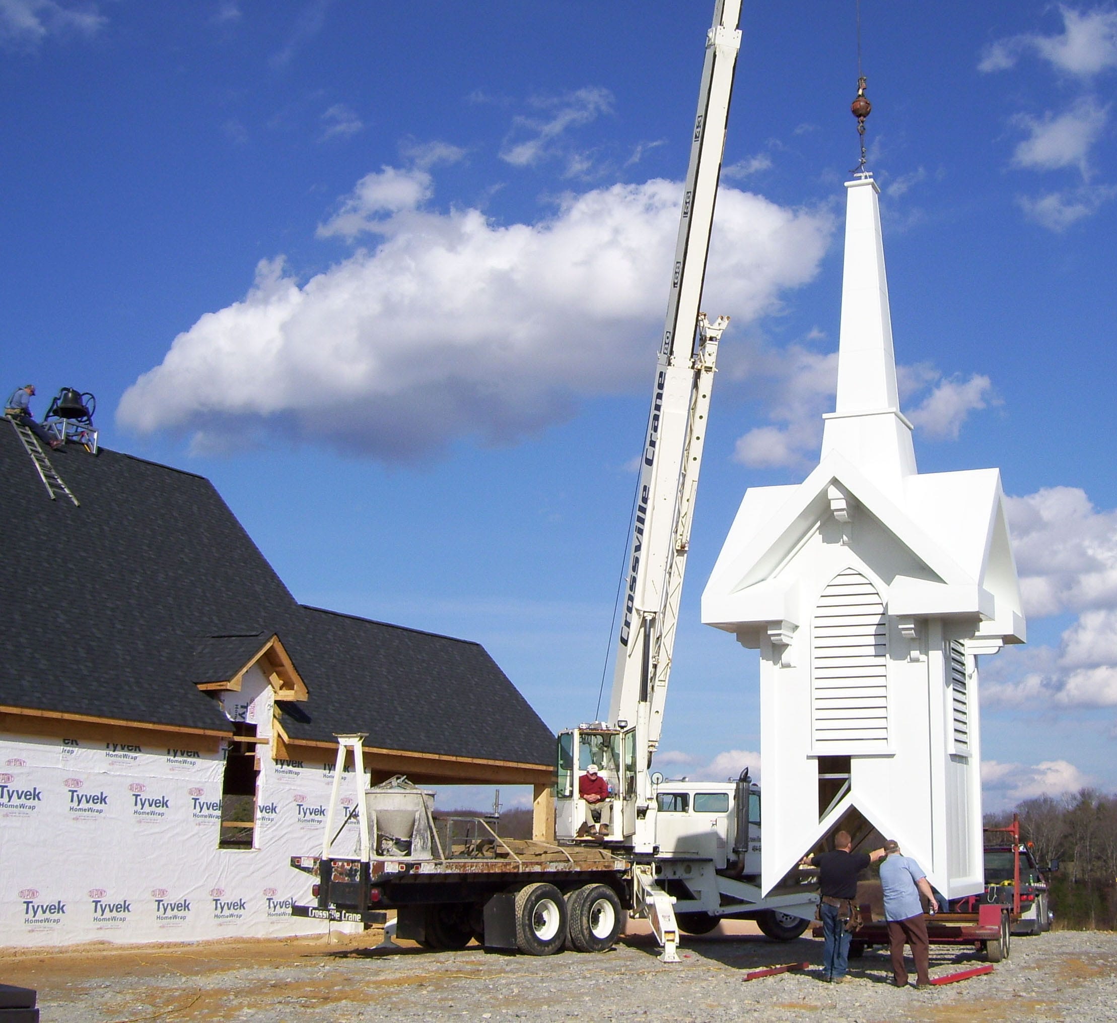 Bob Criswell tolled the church bell at St. Christopher at the church’s July 25, 2009, dedication. The 650-pound bell, shown before its installation, was acquired in May 2005.