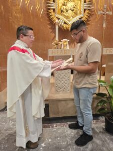 During our pilgrimage, we received a special gift. Father Dalton Reyes, a Colombian priest from New Jersey, invited us to join his Saturday Mass at the Basilica of the National Shrine of the Immaculate Conception. In his homily, he offered a formative and transformative message about the jubilee, tracing its history from ancient Israel to the Church’s present-day celebration. He also blessed our pilgrim cross and the pilgrims themselves.