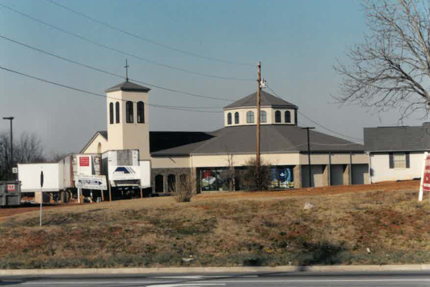 Renovation of both properties took place, and the sale of the old church property had to be negotiated. The old property was sold to Praise Temple, and on June 6, 1996, the last Mass was held at the Wright Road location. Everything was moved—in the rain—to temporary storage in the present Fatima Center. Weekend Masses were celebrated in the Fine Arts Center at Maryville College, and daily Masses were held in the basement of the present rectory. In August 1996, the parish moved into the Fatima Center for weekend Masses.