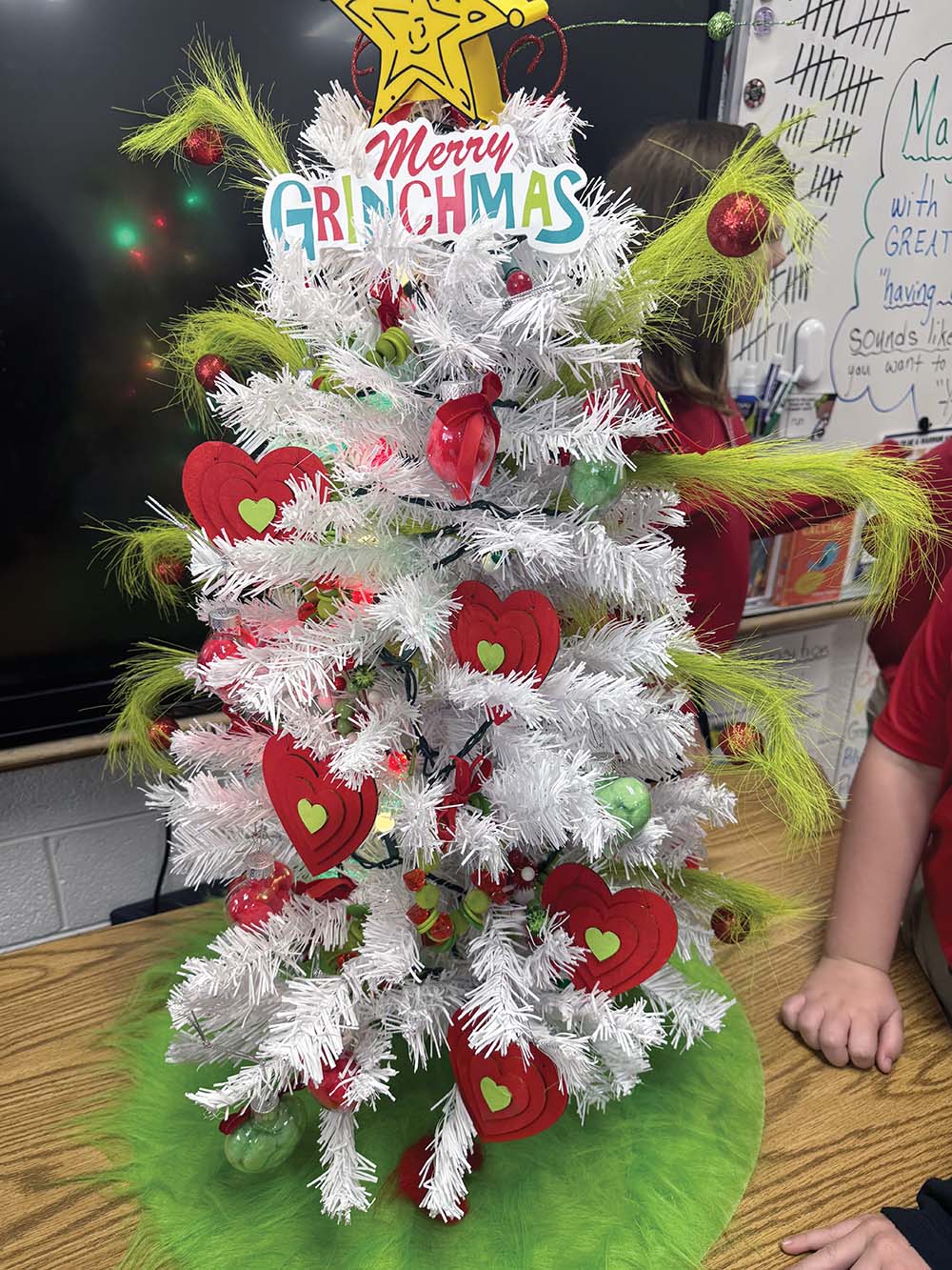 “The class chose the Grinch theme basically to focus on how the Grinch’s heart grew three sizes. So, the tree is centered around the heart—a lot of hearts,” Mrs. Halter said.