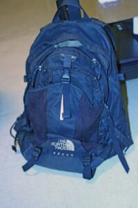 Sam Goodwin brought his high school backpack, made by The North Face, to St. Patrick for his talk. Mr. Goodwin has taken the backpack to all 193 UN-recognized countries in the world.