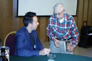 Sam Goodwin autographed copies of his book, Saving Sam: The True Story of an American’s Disappearance in Syria and His Family’s Extraordinary Fight to Bring Him Home, after his talk at St. Patrick Church. (Photo Dan McWilliams)