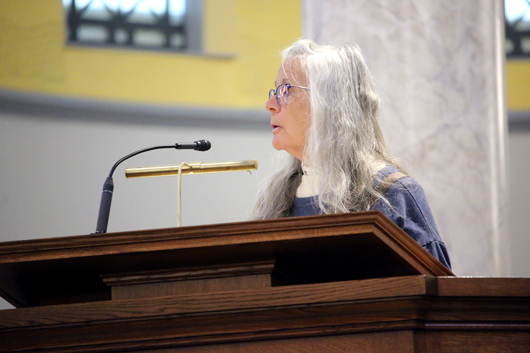 Jackie Foster of the Secular Order of Discalced Carmelites proclaims the second reading at the Mass for vocations. (Dan McWilliams)