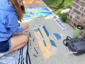 Chesterton Academy freshman Cameryn Lawson depicts the Cathedral of the Most Sacred Heart of Jesus in her chalk art.