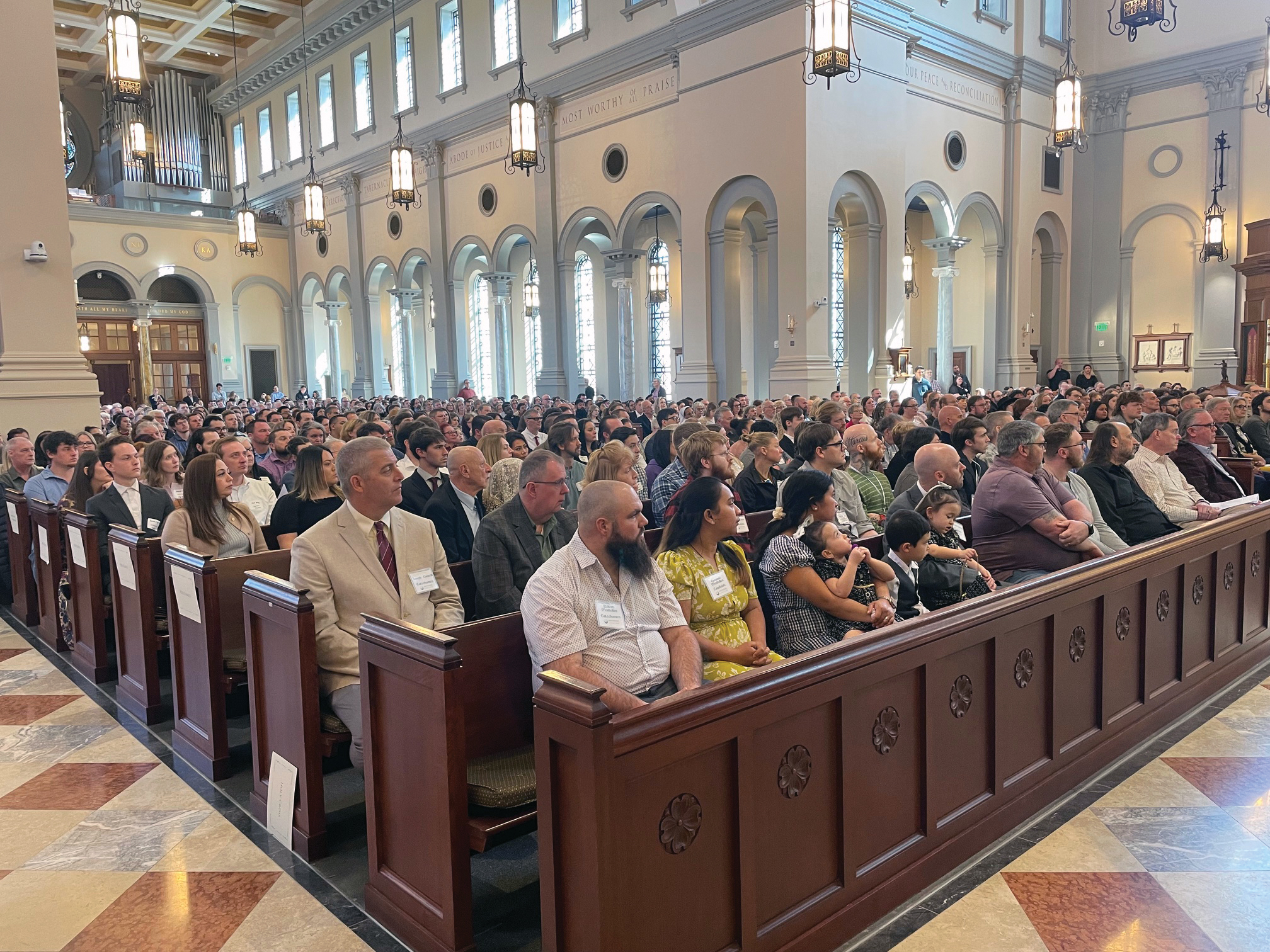 More than 500 newcomers to the Church from throughout the diocese attended the rite this year, with many others unable to. Sponsors, godparents, and cathedral parishioners helped fill all of the pews and then some.