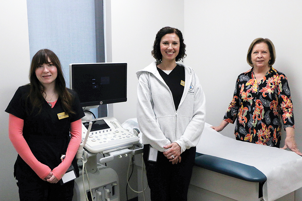 Catholic Charities ultrasound clinic staff includes, from left, registered nurses Samantha Bigley and Whitney Williams and CCETN program leader for pregnancy services Sandi Davidson. (Photo Bill Brewer)