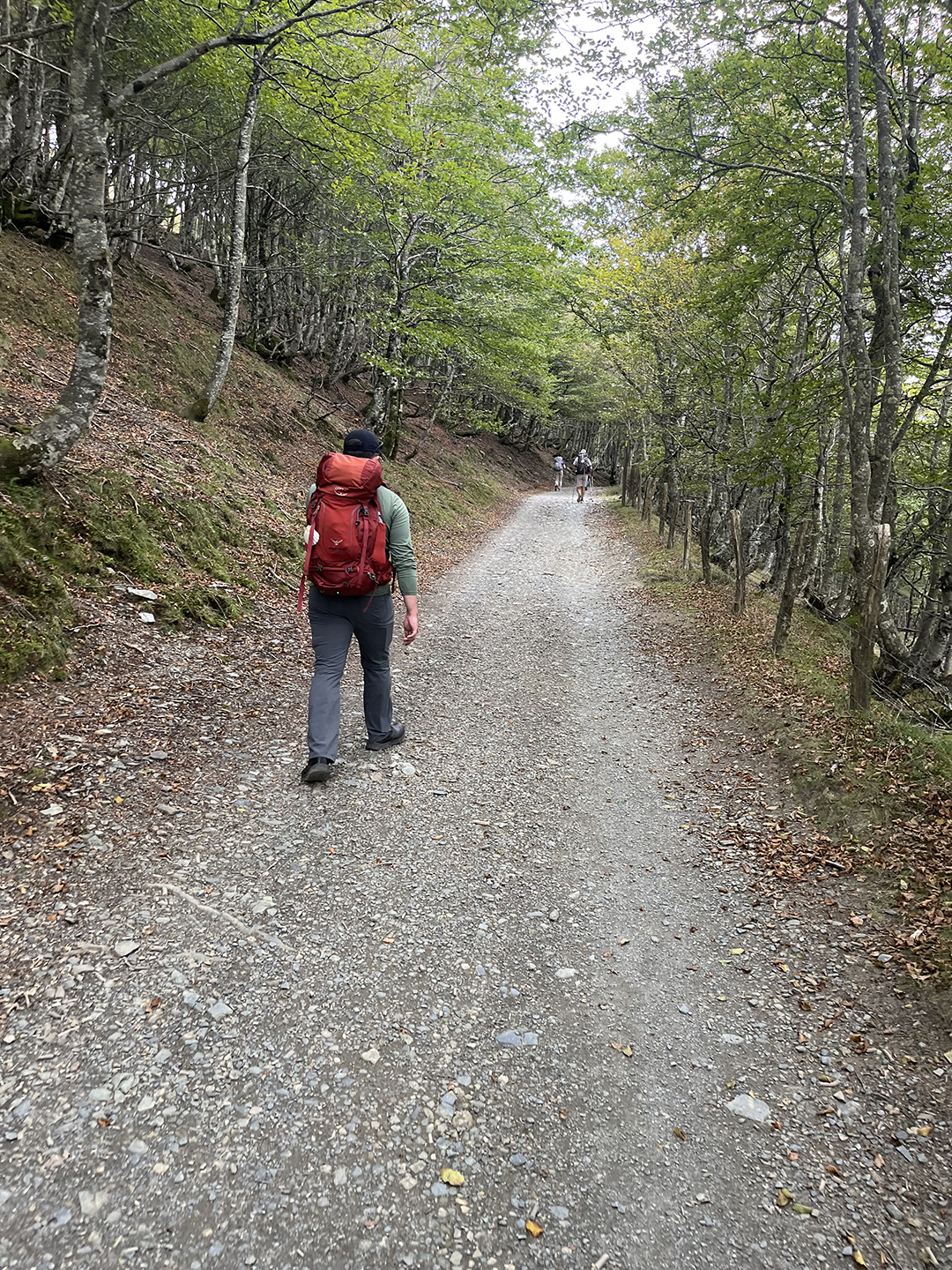 Father Herman and other pilgrims walk ahead of Deacon Herman on the Camino going from Orisson, France, to Roncesvalles on day two of their walk. The Camino is a 500-mile route that begins in Saint-Jean-Pied-de-Port, France, and ends in Santiago de Compostela, Spain.