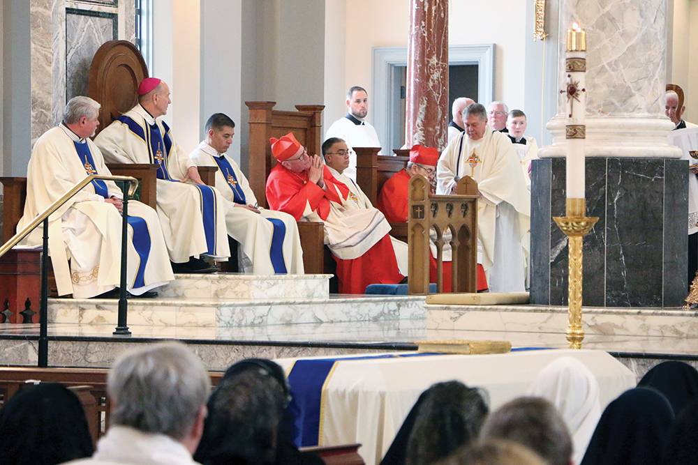 Bishop Mark Beckman presided at the funeral Mass for Bishop Stika on March 10 at the Cathedral of the Most Sacred Heart of Jesus. Bishop Stika, who died at age 68 on Feb. 17 in his native St. Louis, frequently said in homilies after the new cathedral was dedicated in 2018 that he would be buried there.