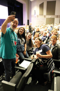 But the middle-aged guy in jeans, tennis shoes, and a T-shirt that read “Erducator Strong” (with the “o” in Strong shaped like a heart) captured the attention of most everyone in the auditorium.
