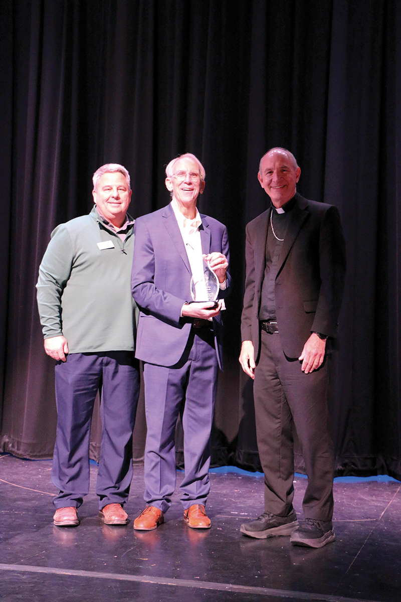 “He came out of retirement to accept the position of interim superintendent,” Mr. Sompayrac explained. “On behalf of all of our teachers, our staff, the Chancery staff, our school leaders, George, I just want to say it has been an honor for you to be back in our diocese, and I have enjoyed just being able to call you on a regular basis to get your advice.”