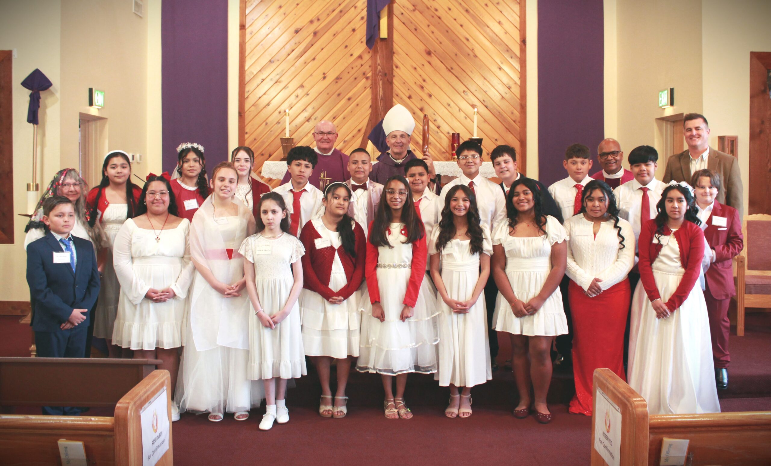 Bishop Mark Beckman confirmed 21 youth, while six received their first Holy Communion, on March 21 at Notre Dame Church in Greeneville.