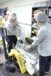 Volunteers take pallets of foodstuff and prepare thousands of meals for Rise Against Hunger at Holy Spirit in Soddy-Daisy on Feb. 1. (Photo Bill Brewer)