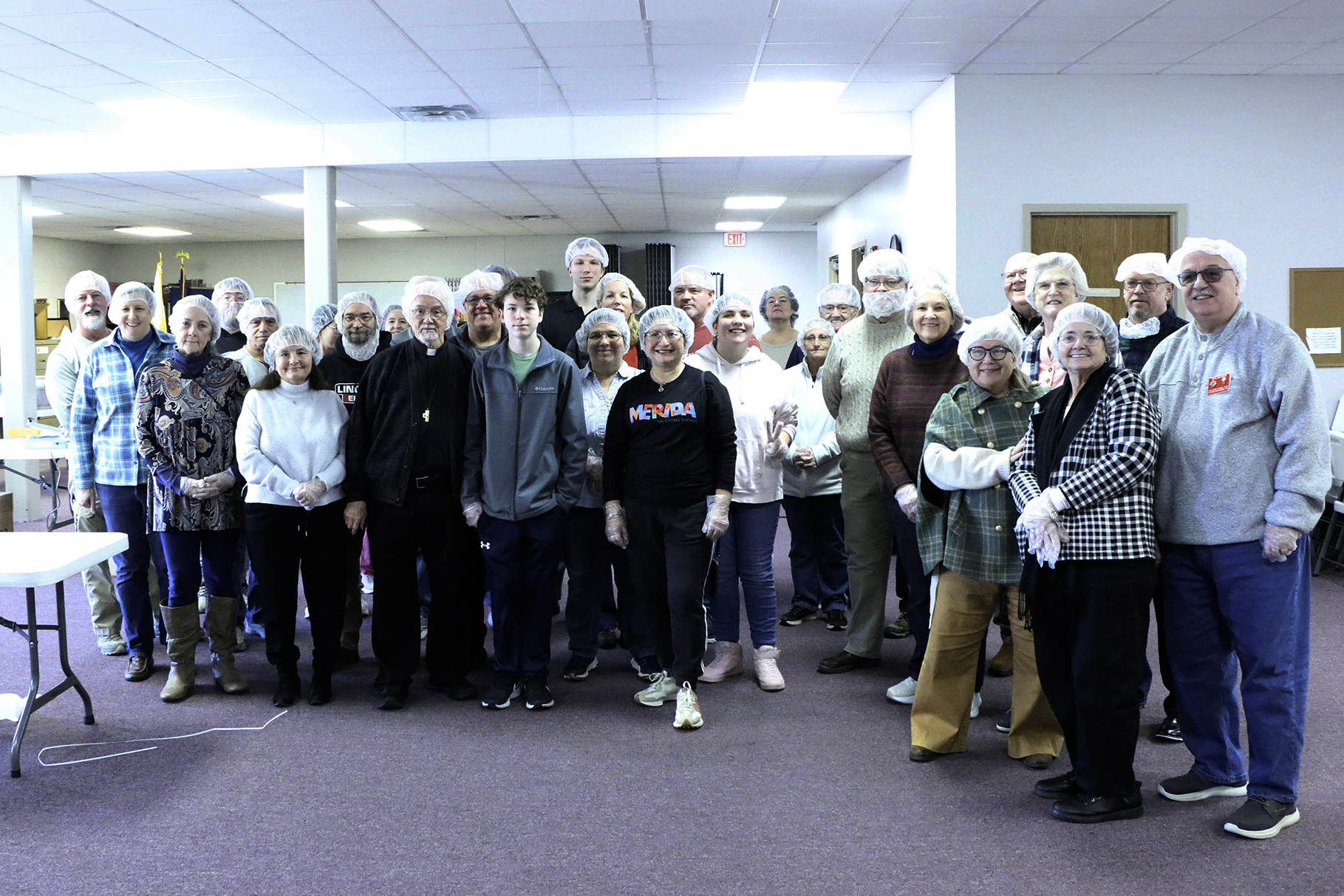 “We needed 60 volunteers spread out over different shifts to assemble the meal packets and put them into boxes. We raised the money and filled the 60 volunteer slots two weeks before the deadline. Mike said he had people coming to him saying, ‘I want to be on the waitlist. If somebody can’t come, I want to come,’” the monsignor continued.