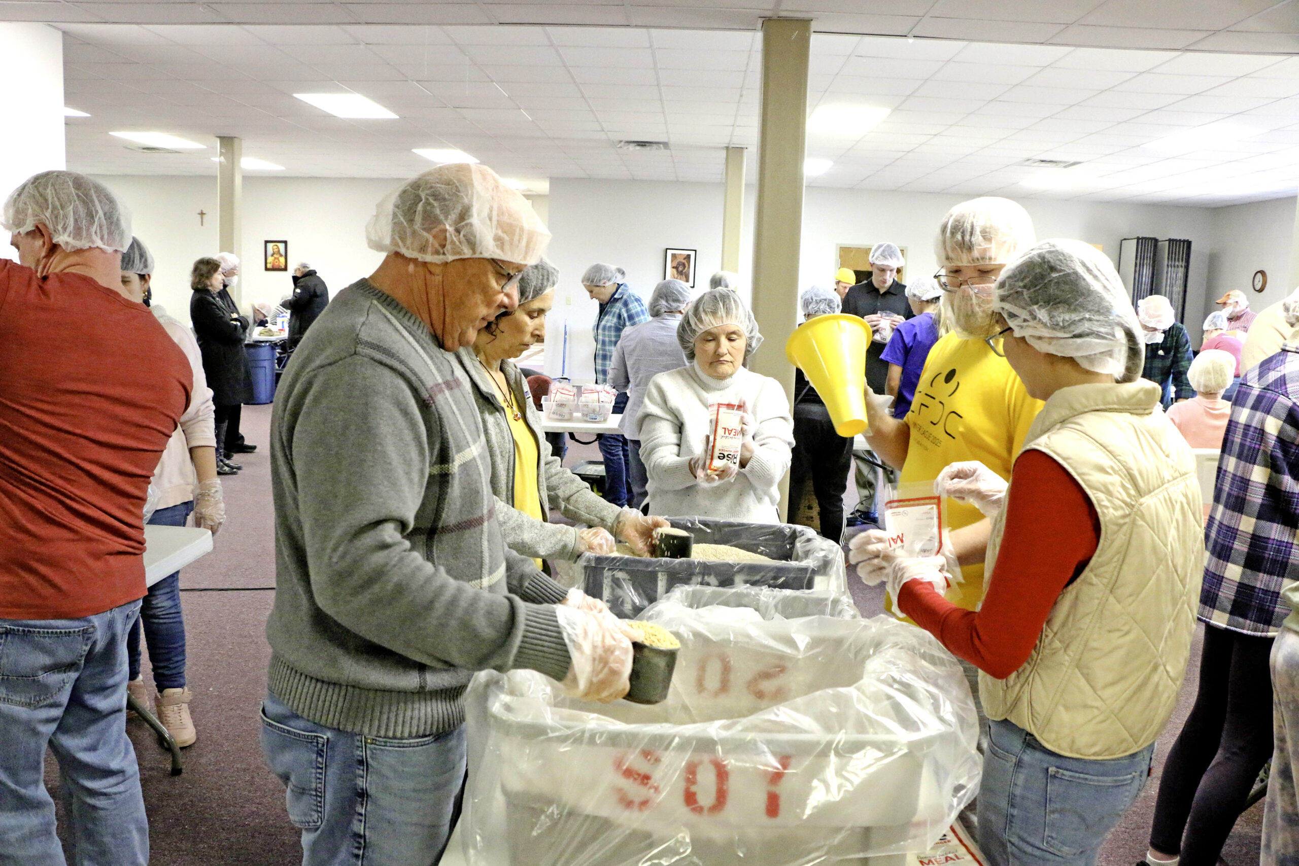 “This is international. To think that in just this amount of time (an afternoon following Sunday Mass), 10,000 meals are packaged and ready for shipping. What that can do in an area that has real food insufficiency, such as countries that have been experiencing famine, to get those 10,000 meals. What a difference that makes in the lives of those people,” he said.